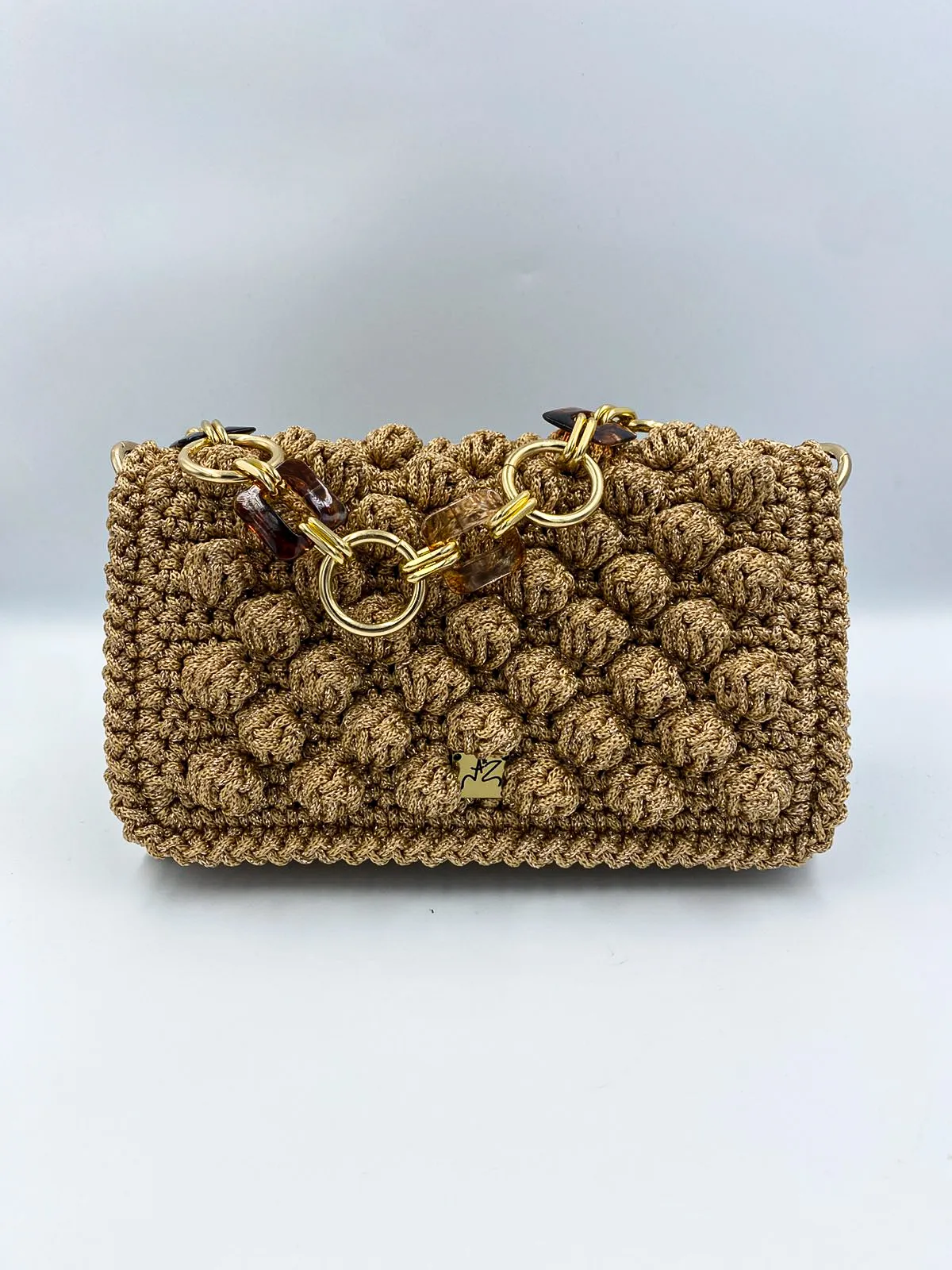 Προσθέστε μια πινελιά τέχνης στην εμφάνισή σας με αυτή την εκπληκτική χειροποίητη τσάντα, κροσέ για όσους εκτιμούν το μοναδικό σχεδιασμό και την εκλεπτυσμένη κατασκευή. Η απαλή, φουσκωτή υφή της και το έντονο λουράκι της αλυσίδας δημιουργούν μια μοντέρνα αλλά και διαχρονική αισθητική.