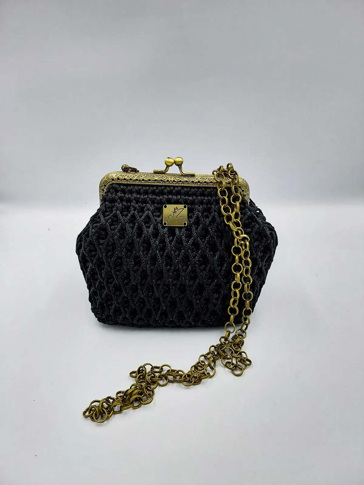 Ανακαλύψτε την τέλεια ισορροπία μεταξύ έντονης κομψότητας και χειροποίητης γοητείας με αυτή την χειροποίητη τσάντα με πλαίσιο, η οποία διαθέτει ένα εκλεπτυσμένο μεταλλικό πλαίσιο που προσθέτει μια πινελιά αστικής κομψότητας. Κεντημένη με περίτεχνο κροσέ, το ανάγλυφο σώμα της έρχεται σε όμορφη αντίθεση με το κομψό, γυαλισμένο μεταλλικό φινίρισμα — μια αρμονία απαλότητας και αντοχής.