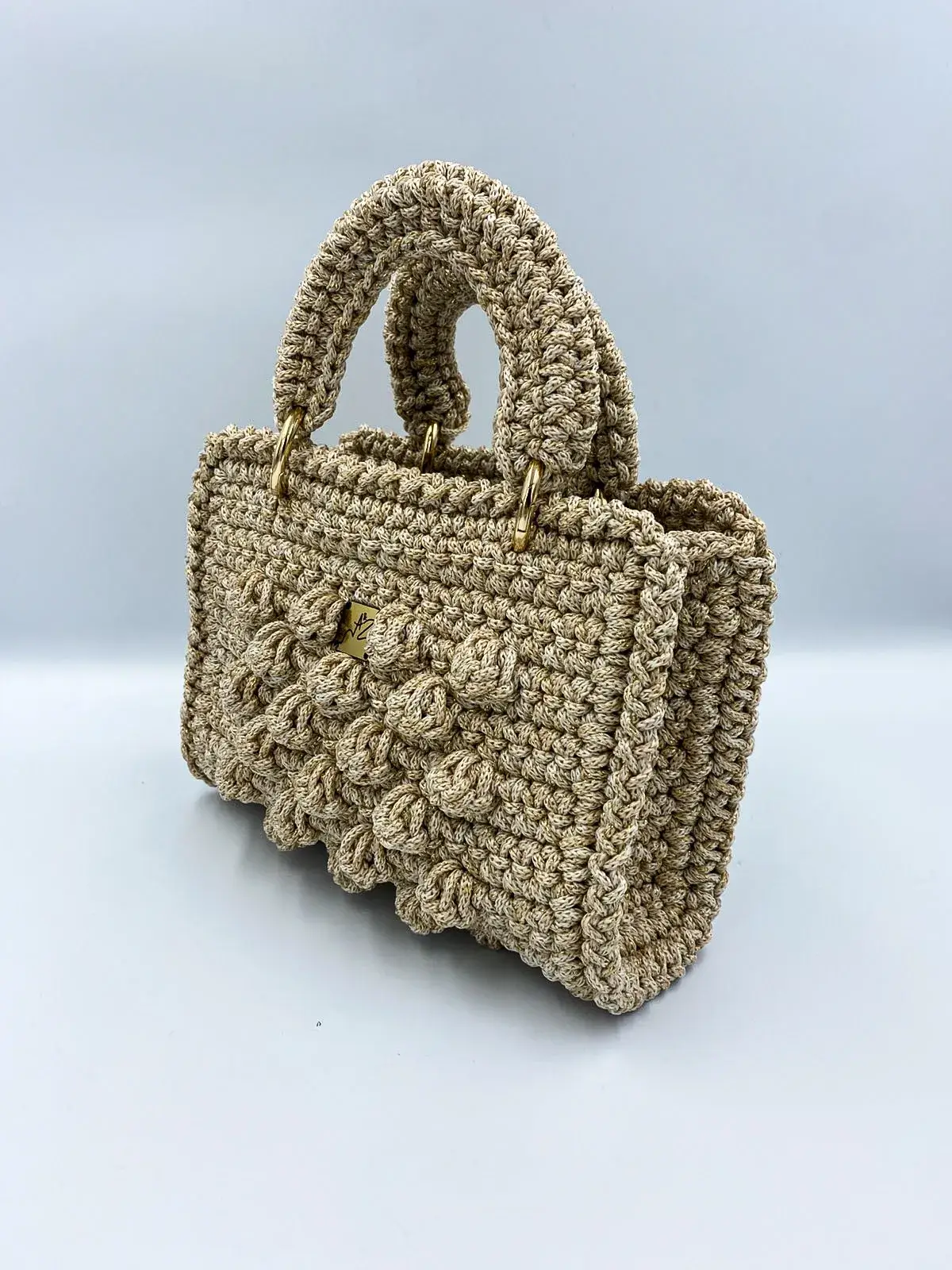 Κάντε μια δήλωση με αυτή την χειροποίητη τσάντα tote — όπου η φόρμα συναντά τη λειτουργικότητα με τον πιο κομψό τρόπο. Με ένα γλυπτό μπροστινό μέρος με υφή φυσαλίδων και στιβαρές χειροποίητες λαβές, αυτή η τσάντα συνδυάζει την παιχνιδιάρικη τέχνη με την καθημερινή πρακτικότητα.