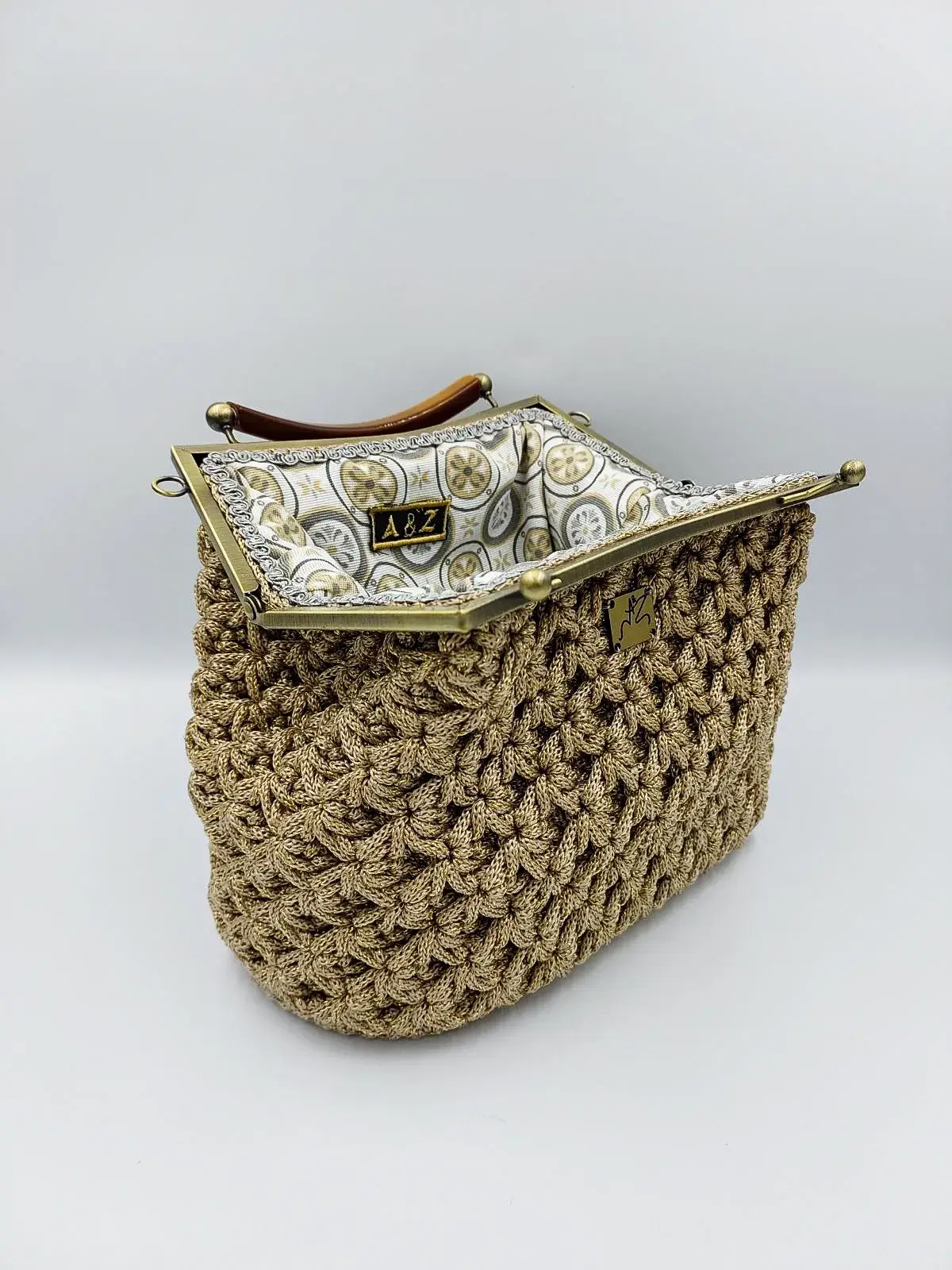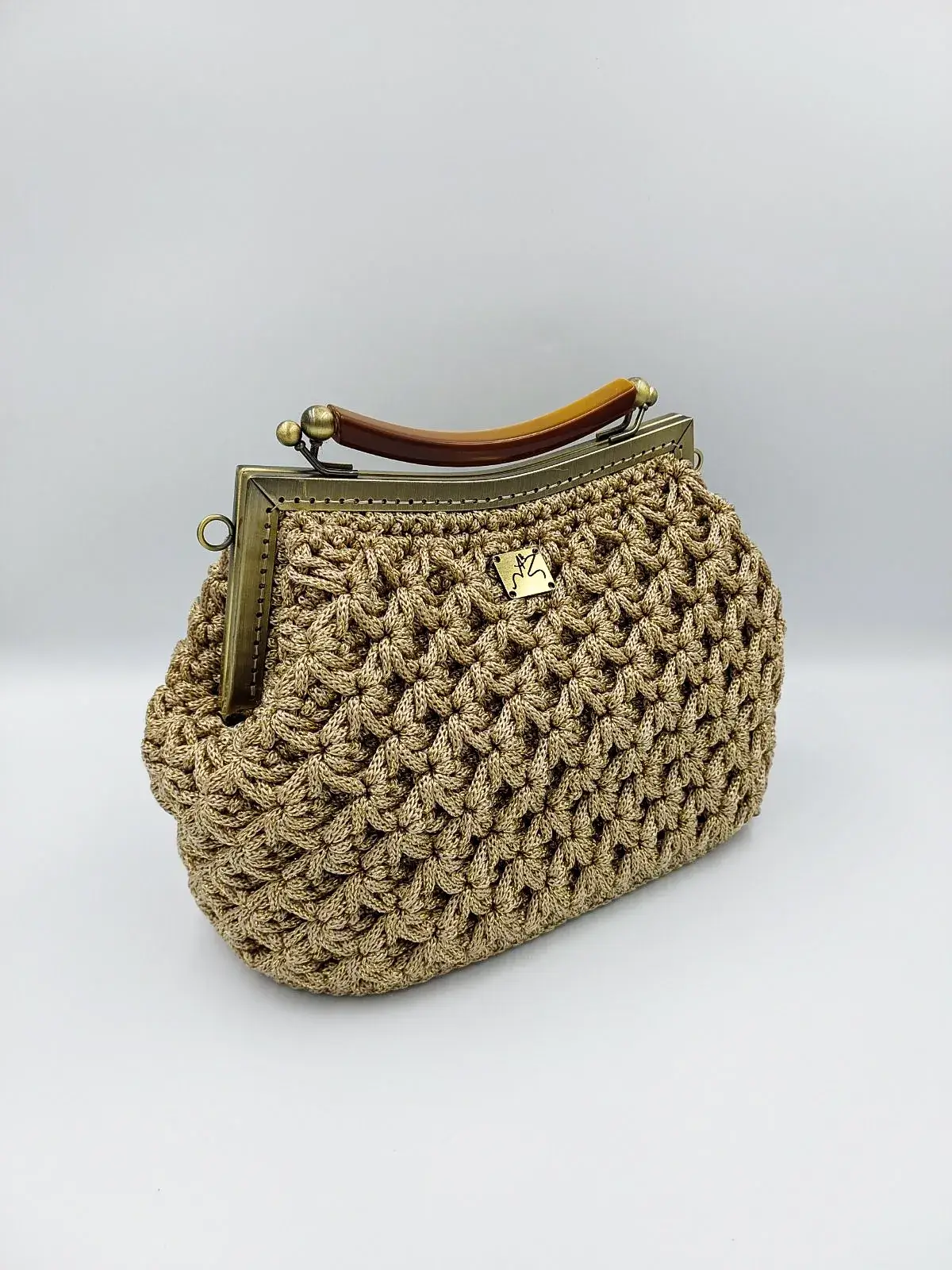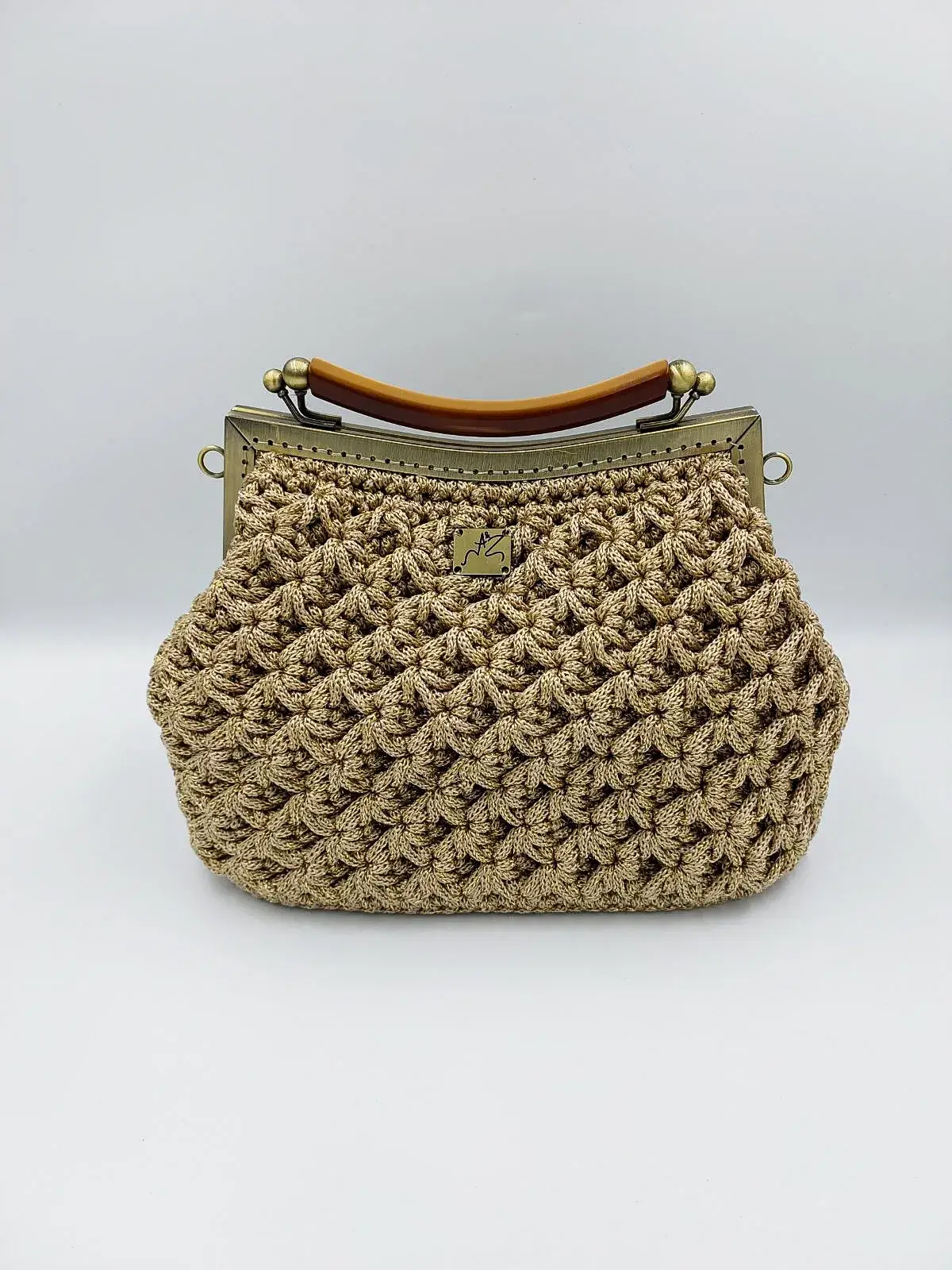 Discover the perfect balance of bold elegance and artisanal charm with this handmade Frame Handbag, featuring a refined metallic frame that adds a touch of urban sophistication. Intricately crocheted with care, its textured body contrasts beautifully with the sleek, polished metal finish — a harmony of softness and strength.