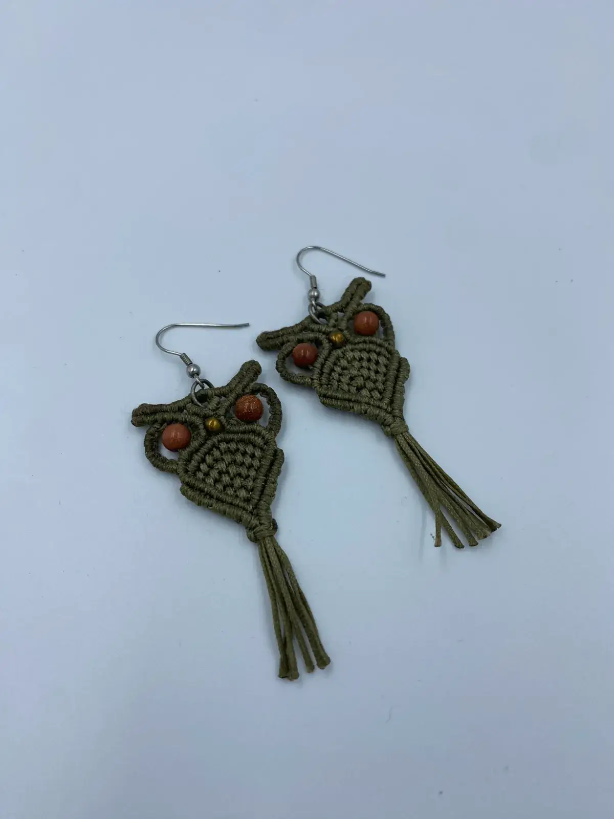 Macrame Earrings Owl Green