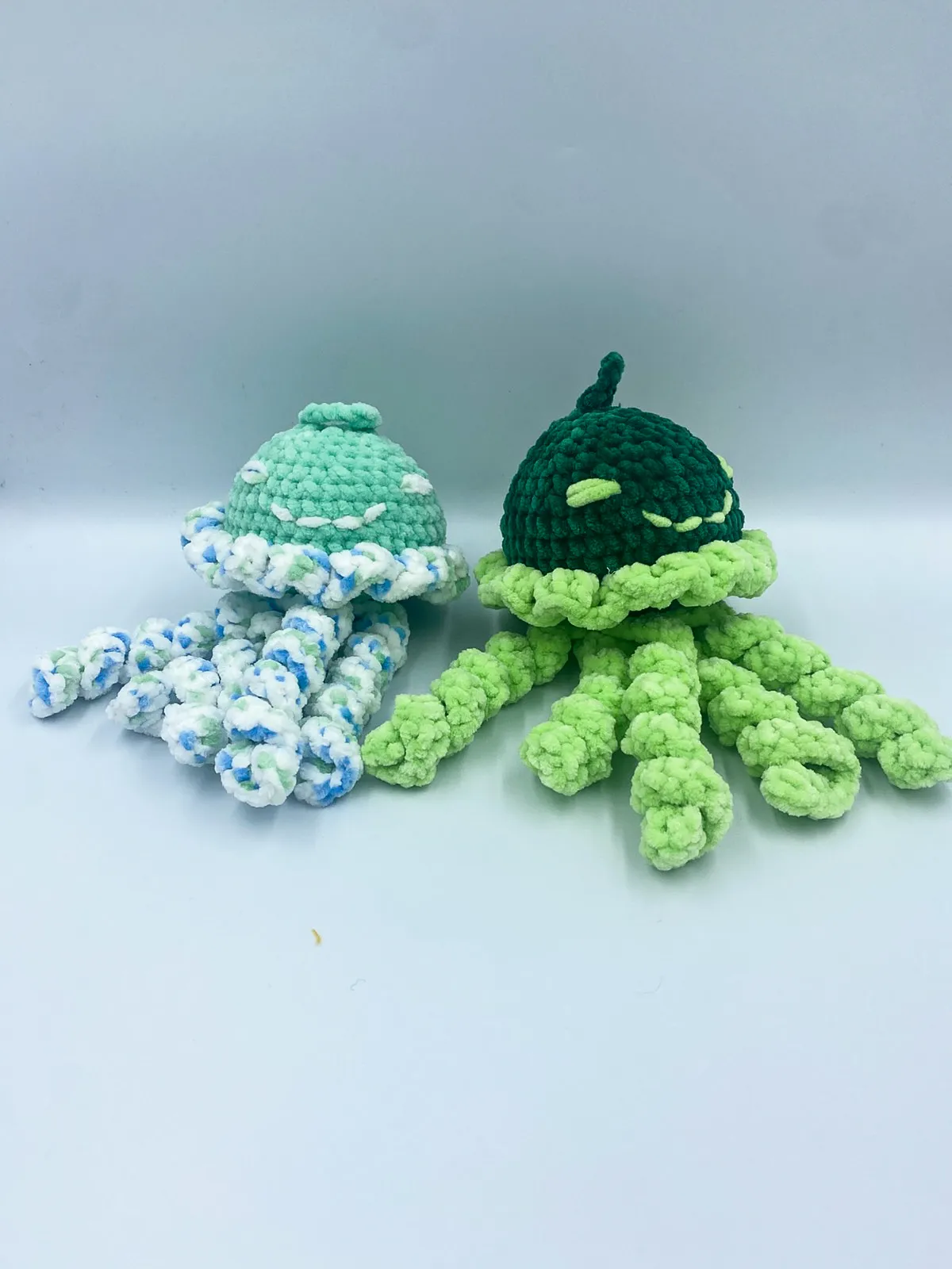 Meet the sweetest handmade amigurumi plush toys, inspired by the magical underwater world! Crafted with soft, fluffy yarn in shades of green and aqua, these little octopuses or jellyfish (however you imagine them!) are perfect for cuddles and playtime. Each piece is one-of-a-kind, carefully crocheted by hand with attention to detail, bringing warmth and charm to any child’s space. They also make a wonderful gift, adding a joyful, personal touch that will be loved by kids and grown-ups alike.