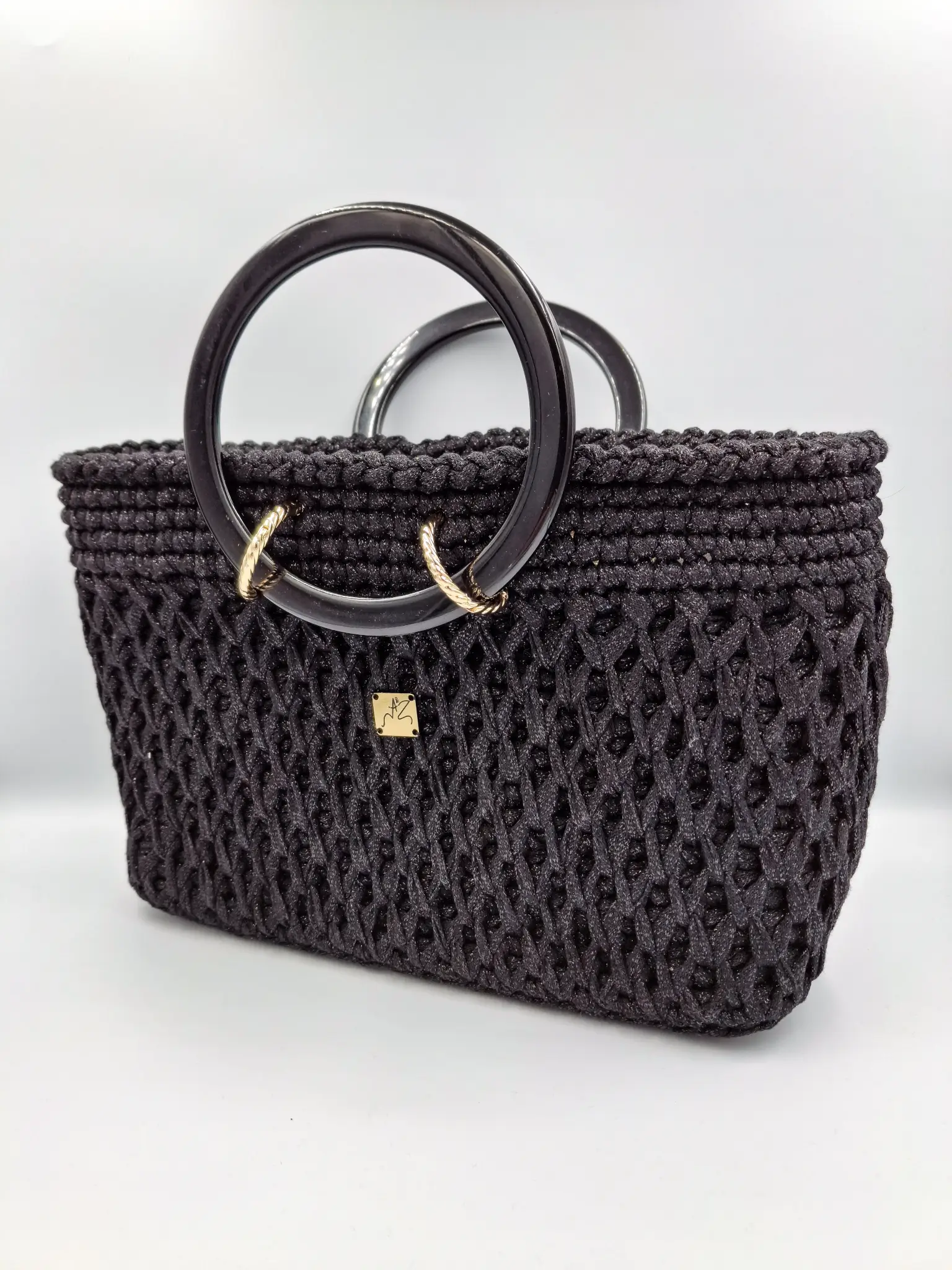 Elevate your everyday look with this stunning handmade Big tote, designed to combine spacious functionality with timeless elegance. Featuring an airy, openwork crochet pattern and bold black resin handles, this bag brings a natural, relaxed sophistication to any outfit.