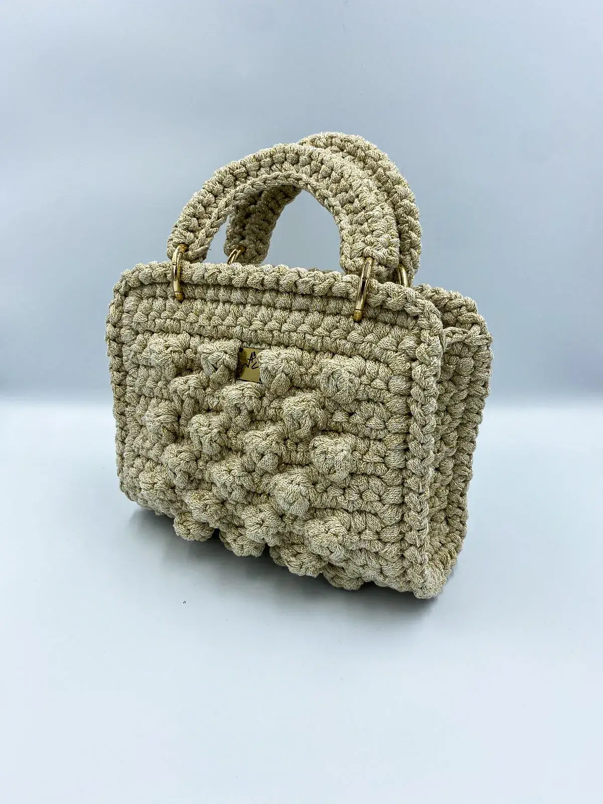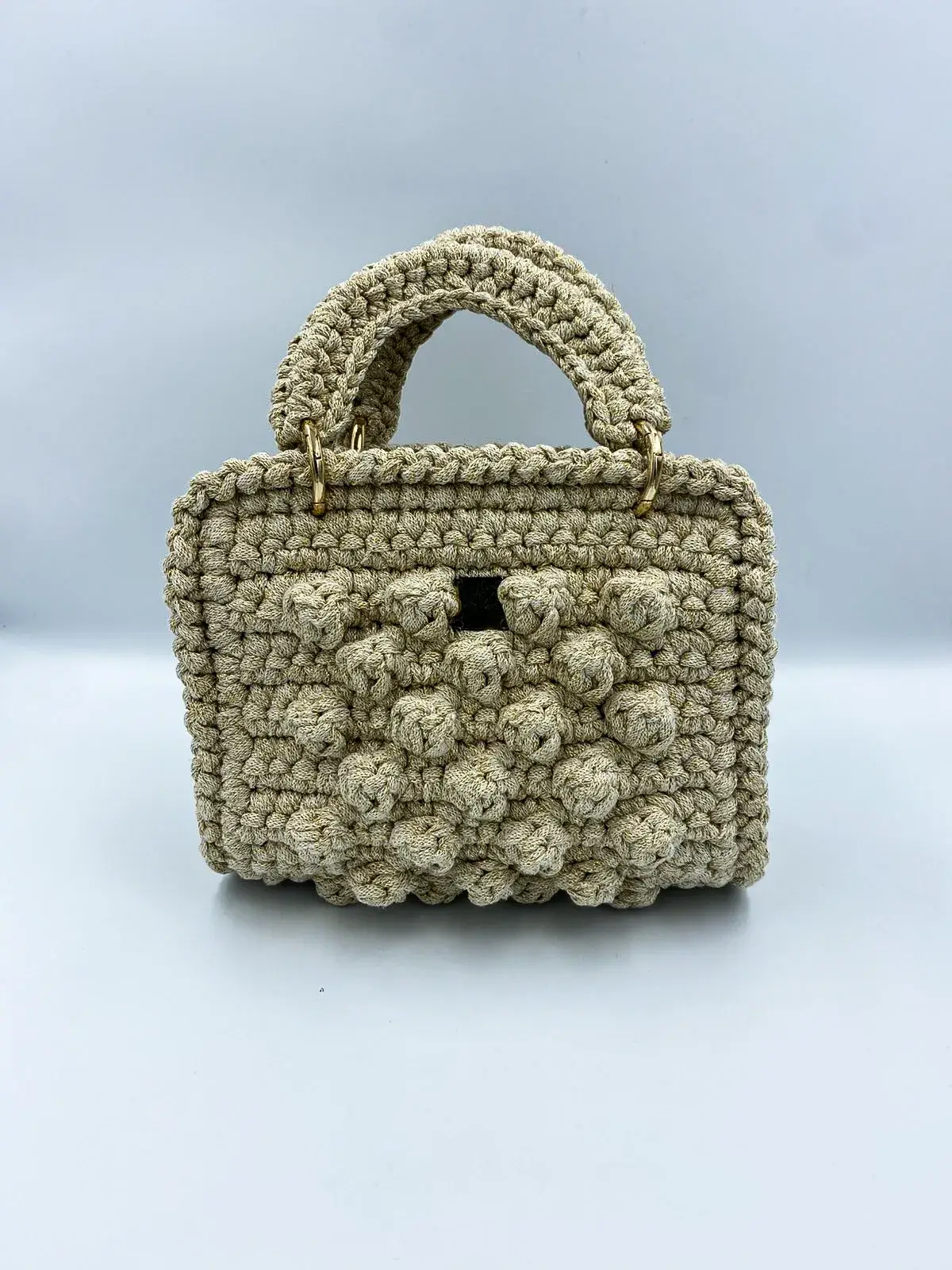 Make a statement with this hand-crocheted tote bag — where form meets function in the most elegant way. Featuring a sculptural bubble-textured front and sturdy handcrafted handles, this bag combines playful artistry with everyday practicality.